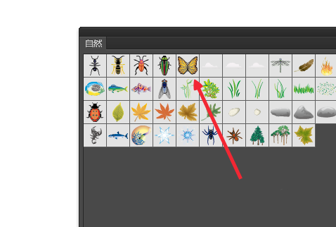 4、找到自然符号库里的一个蝴蝶符号,如图。