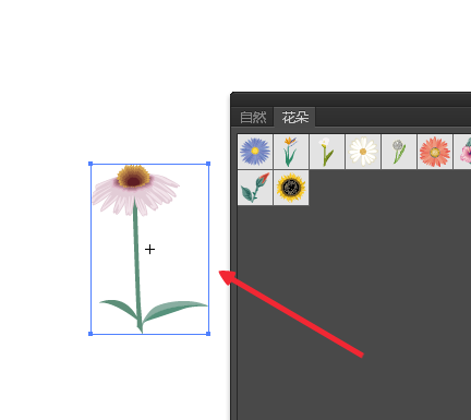 7、找到一个合适的花朵符号拉到面板中,如图。