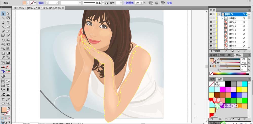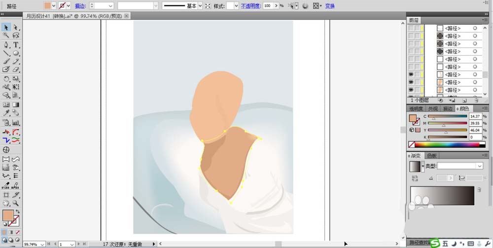 ai中想要设计一个漂亮而优雅的女人,简单的白色、灰色、粉色、棕色、蓝色就可以呈现这样的一个美丽的画面效果,该怎么绘制呢?下面我们就来看看详细的教程。