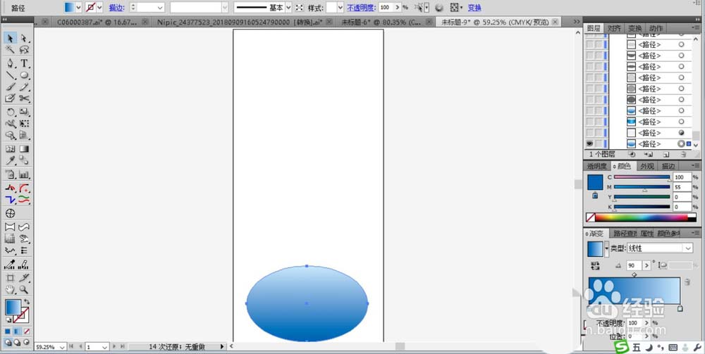 1、使用圆形工具绘制出一个椭圆并用蓝色的渐变填充。