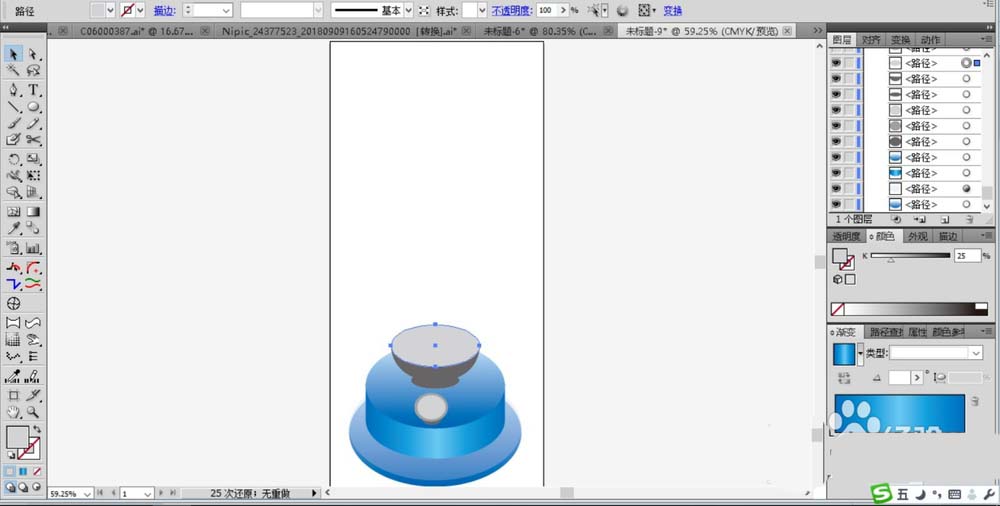 3、继续使用钢笔绘制出底座上的小的结构件,我们用灰黑色与灰白色的渐变来填充。