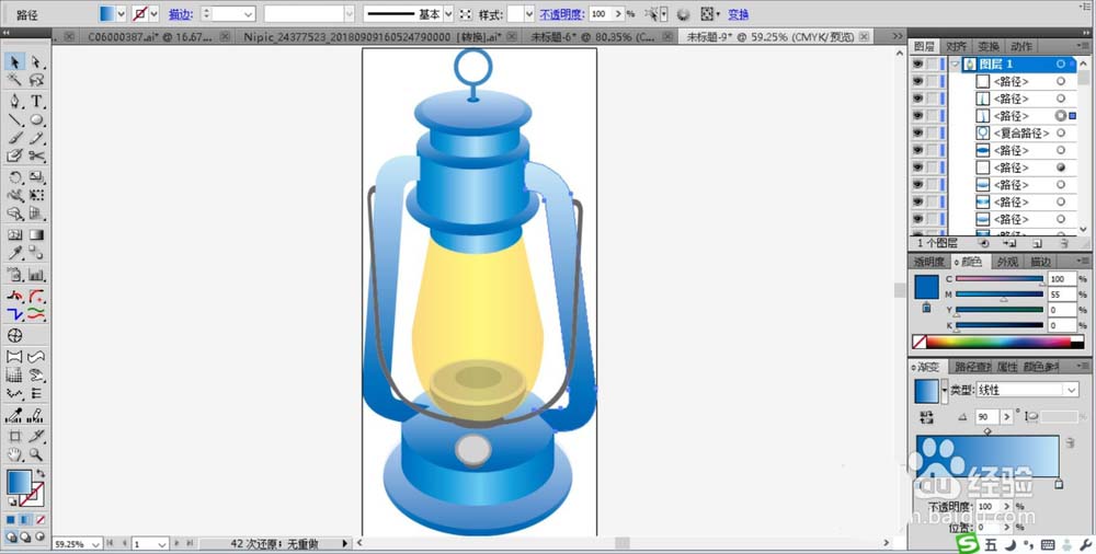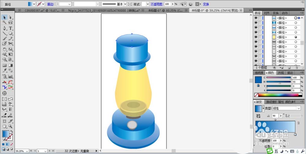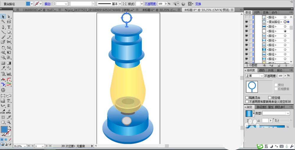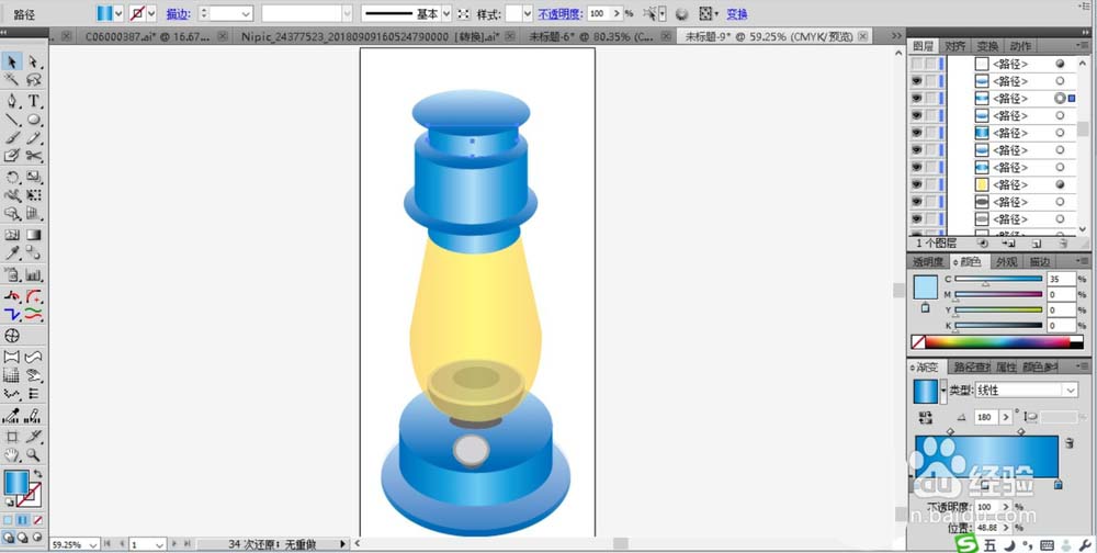 以前经常能见到煤油灯,还有阿拉丁灯神的故事,现在虽然见不到了,但是可以绘制出来,下面我们就来用蓝色与黄色进行搭配,充分使用渐变来呈现各个结构件的立体感觉,用半透明的效果来呈现玻璃的材质,从而绘制出让人关注的华丽煤油灯的方法,请看下文详细介绍。