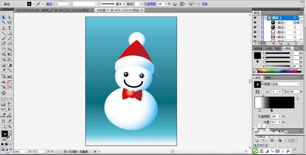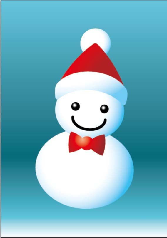 6、最后,我们绘制出小雪人的眼晴、嘴巴的路径,眼晴用白色到黑色的渐变填充,嘴巴用黑色填充,小雪人图片设计完成!