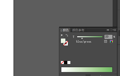 6、将鼠标指向该色板,将显示“blue/green 20%”