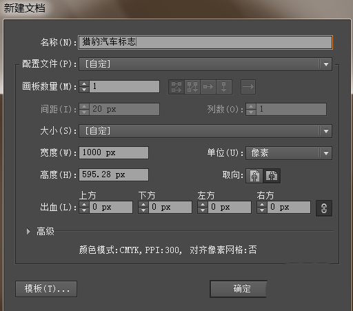 1、首先打开软件,新建空白文档命名为猎豹汽车标志,如图。