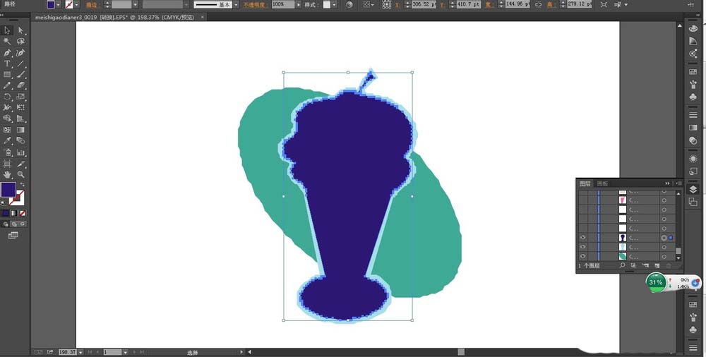 3、复制一下这个玻璃杯的路径,我们缩小到90%后再用白色填充,让白色位于最上层。