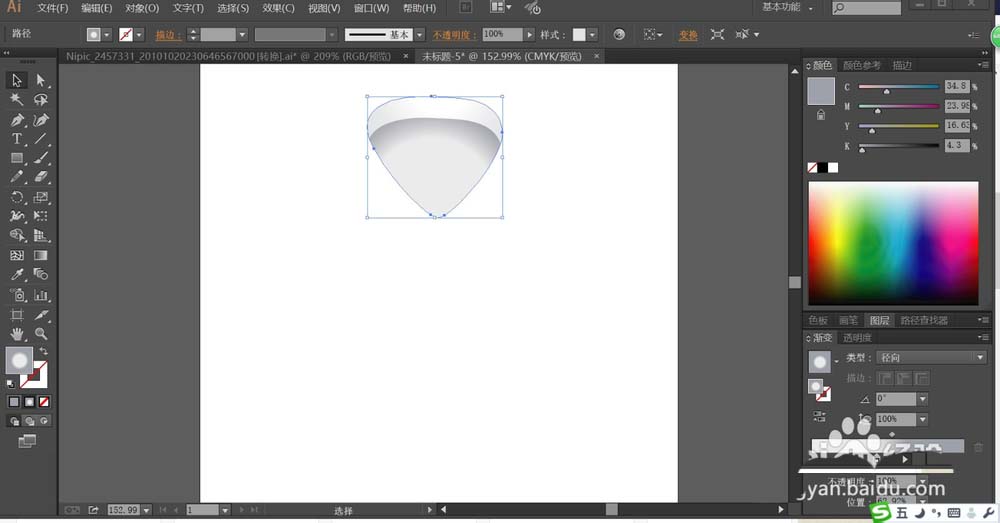 5、最后,我们画出衬衫的主体路径,我们用灰白色的渐变填充。