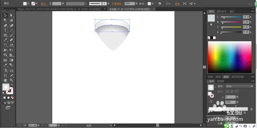 2、接着,我们画出衬衫的左右两侧的领口,我们用灰白色的渐变填充。