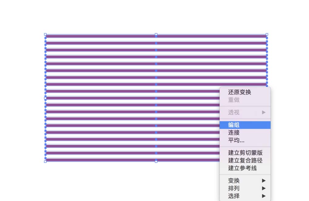 3、选中全部矩形,单击鼠标右键,在出现的命令面板中选择“编组”,把所有矩形成组,也可在选中后按ctrl+G组合键成组。