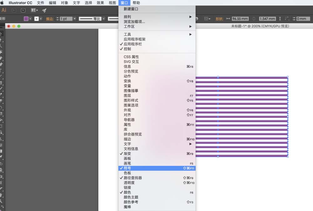 4、在AI菜单栏上找到窗口菜单,单击,在下拉所有窗口选项中找到“符号”,这样就可以在界面中调出符号面板。