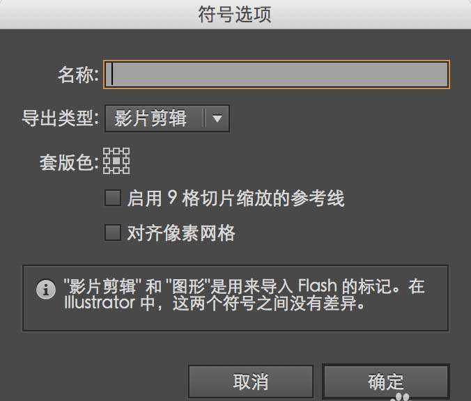 5、用选择工具选中刚刚编组的矩形,按住鼠标左键不放,拖动到符号面板中,这样就可以创建符号。在弹出的对话框可以给符号进行命名。