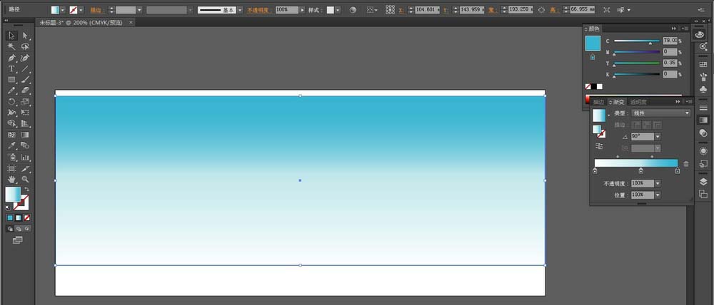 1、先用矩形工具画出天空所在的矩形并填充蓝白色的渐变。