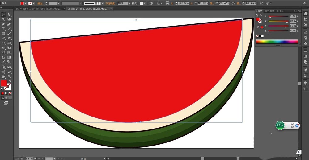夏天经常吃西瓜,该怎么绘制切开的西瓜片呢?下面我们就来学习一下不同色彩之间的过渡技巧,还有快速绘制相似元素的方法,请看下文详细介绍。