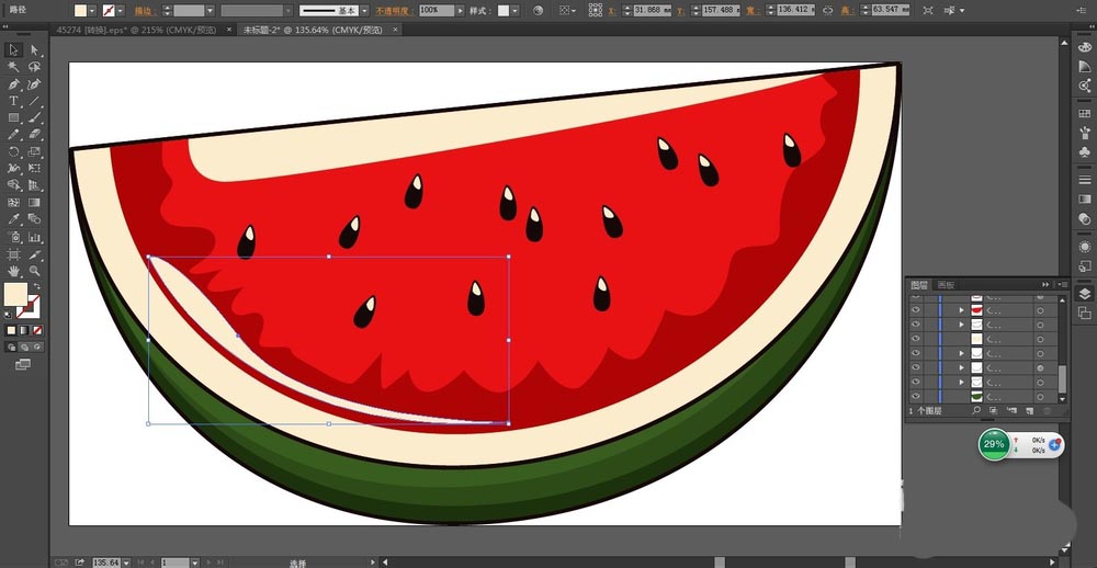 5、复制更多的西瓜子并改变大小与位置,让西瓜籽分别到西瓜的表面。