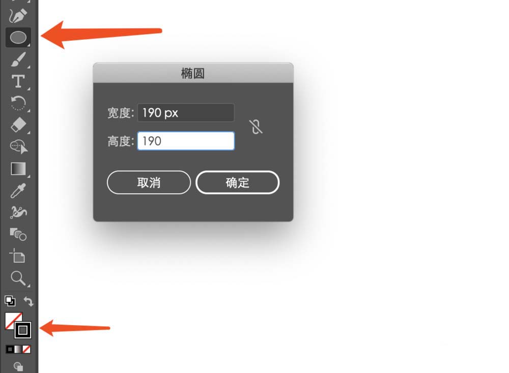 1、打开ai软件,新建文件后选择椭圆工具,打开描边关闭填充,将描边色设置为黑色,画一个190*190像素的圆形