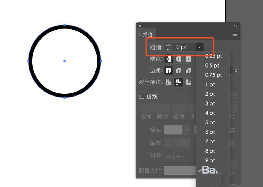 2、选中圆形后,打开窗口—描边,修改圆形的描边粗细