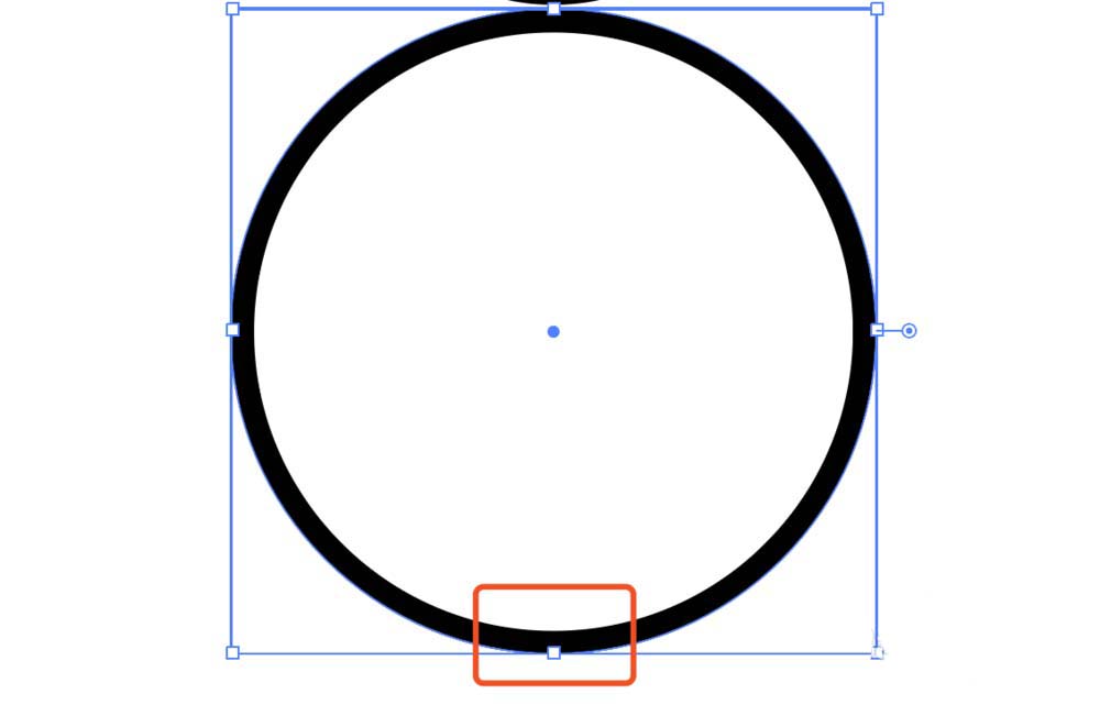 4、使用直接选择工具选择圆形最下面的锚点,点击dele键删除即可