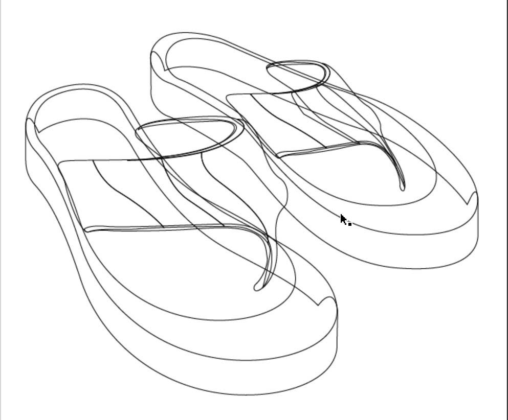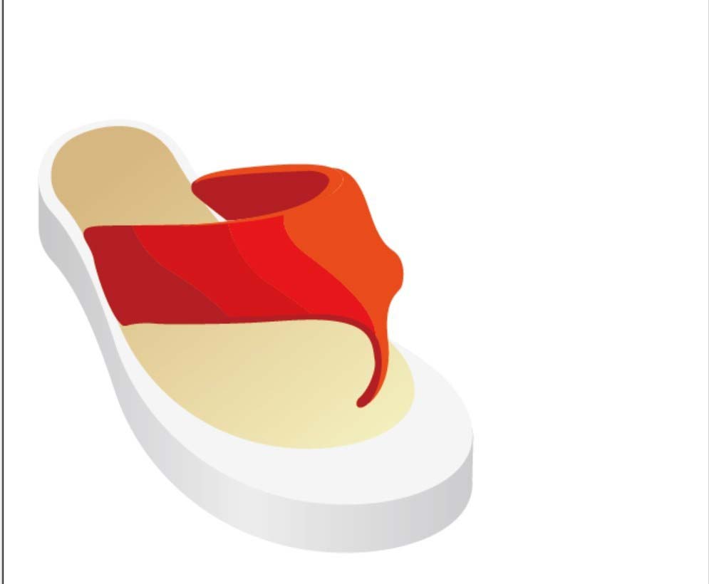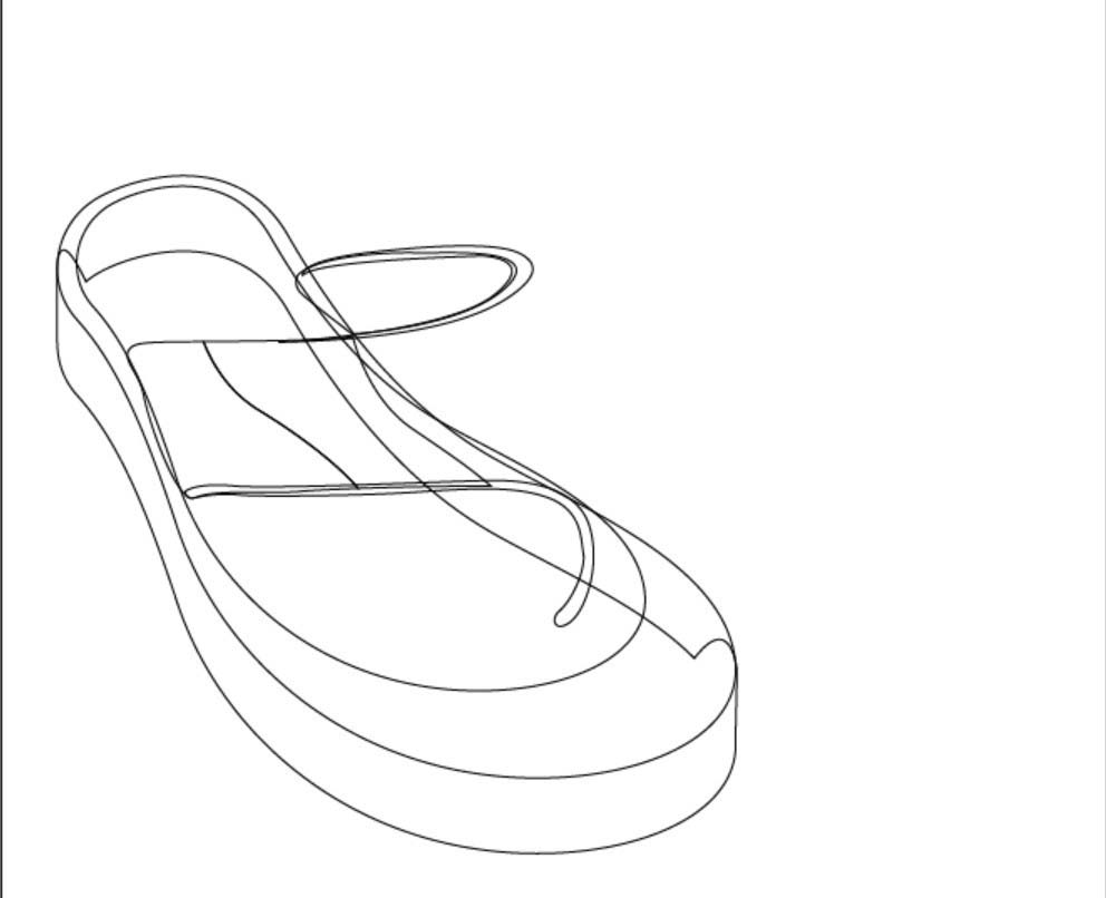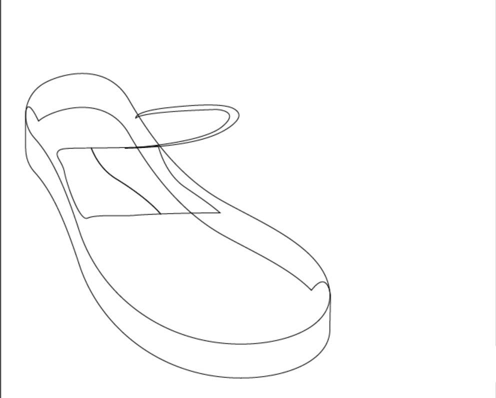 1、用钢笔工具绘制出一只拖鞋的基本轮廓,拖鞋的主要结构上、中、下三个层次一一绘制出来。