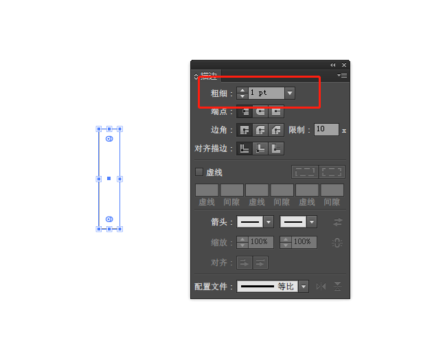 4、使用直接选择工具,单选矩形右下角的锚点,将圆角度拉到最大