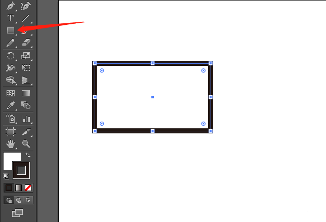 1、打开AI软件,新建文件后,选择左边工具栏的矩形工具,打开描边和填充,在画板上画一个矩形