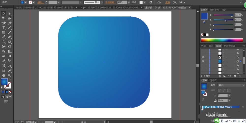 1、先用钢笔工具画出整个地图的轮廓路径,我们再用矩形工具画出整个图标的路径并用蓝色的渐变填充。