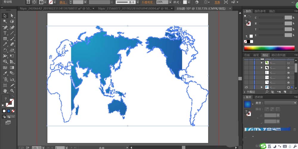 2、让矩形与地图路径做一个剪切蒙版的效果,从而让蓝色的地图呈现出来。