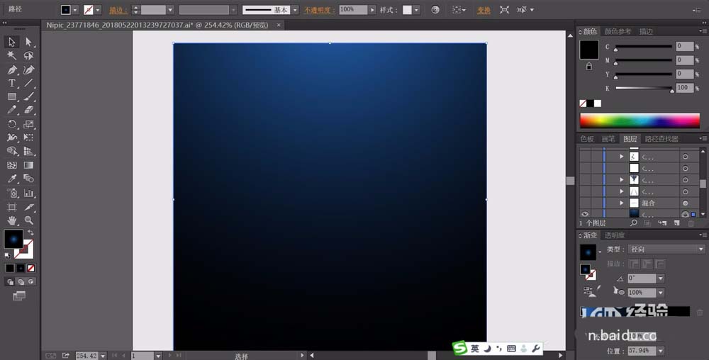 1、先通过渐变工具设置一个从蓝黑色到灰黑色的一个渐变的效果,给背景形状填充这个蓝色的渐变。