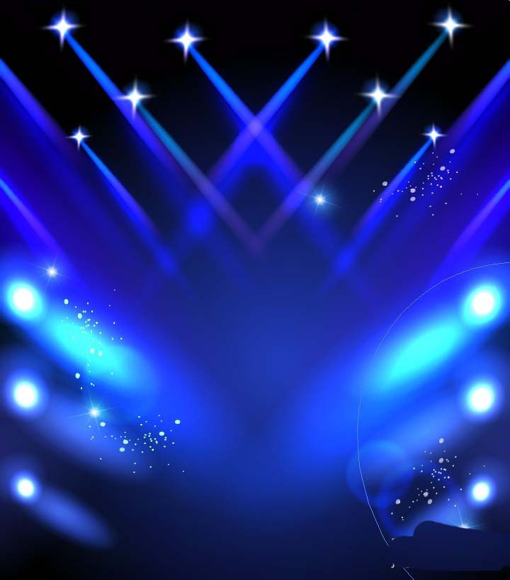 2、接着,我们用圆形工具画出灯光在舞台地面上的光影,我们用滤色模式填充蓝色的渐变,再通过模糊滤镜做出虚幻的效果。