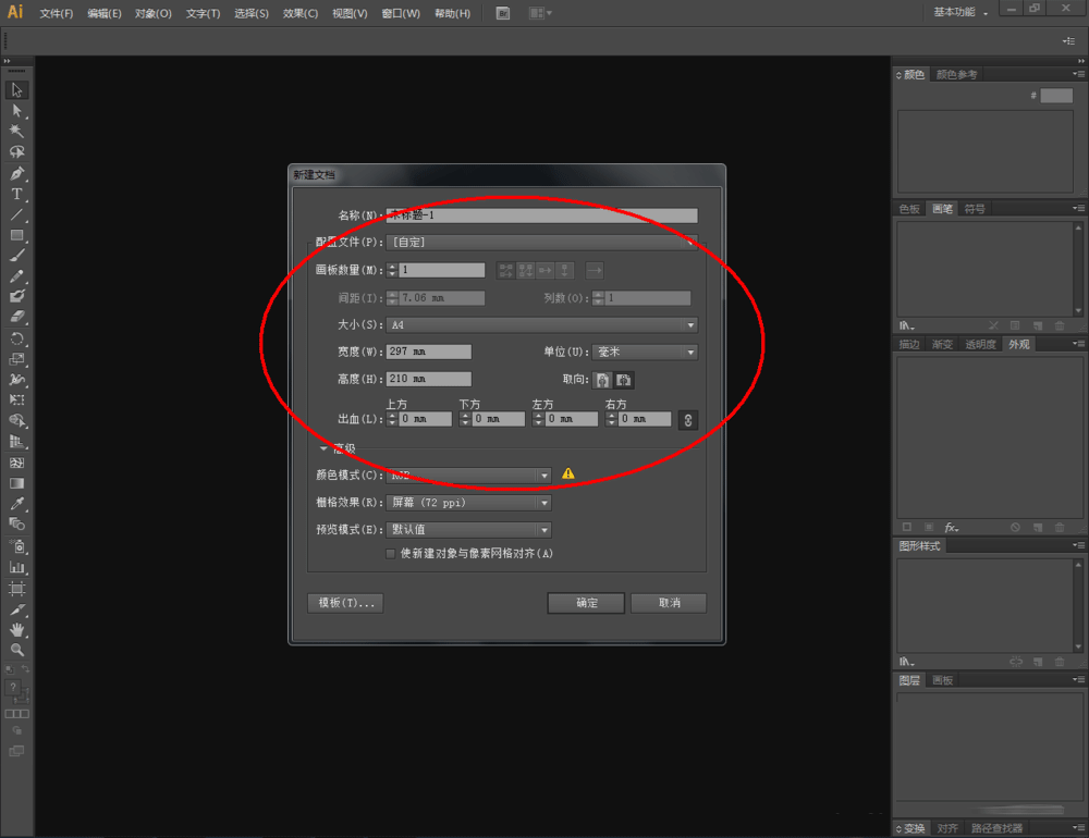 1、打开Adobe Illustrator CS6软件,点击【文件】-【新建】,按图示参数新建一个Ai文档;