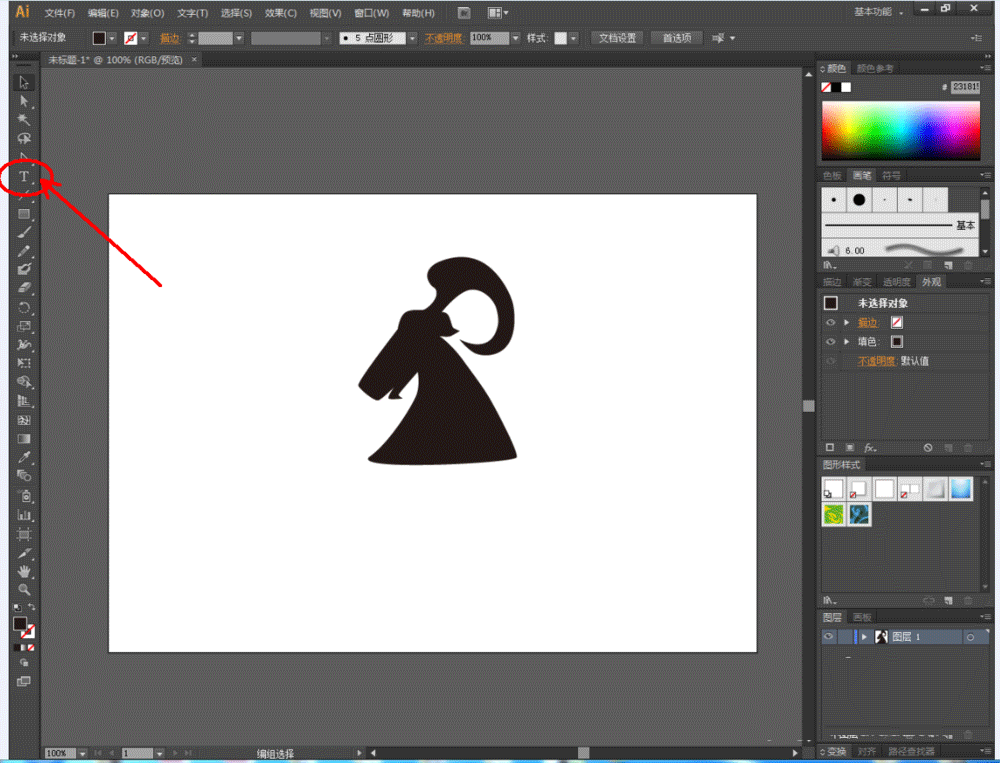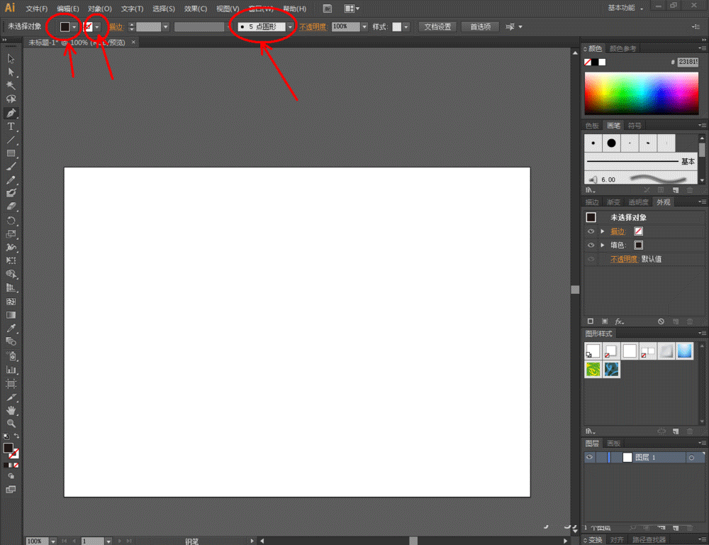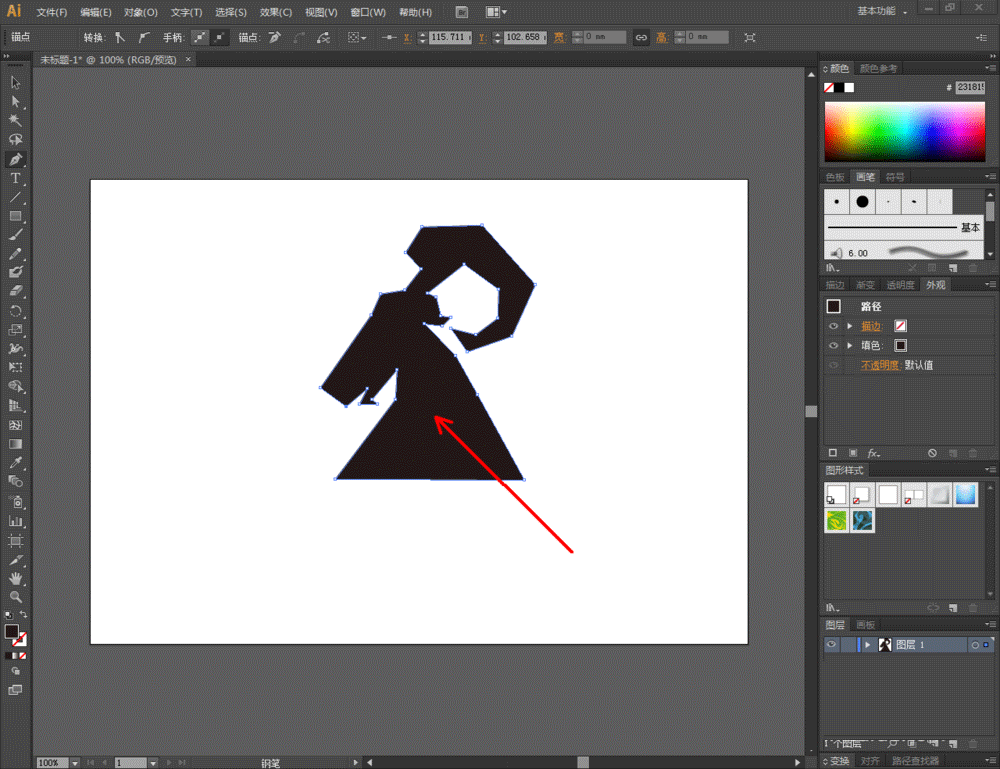 2、点击【钢笔工具】,按图示设置好钢笔的笔触、大小、颜色等各个参数后,在作图区域绘制一个自定义图案。完成后,点击【转换锚点工具】对图案上的节点进行平滑圆化处理(如图所示);