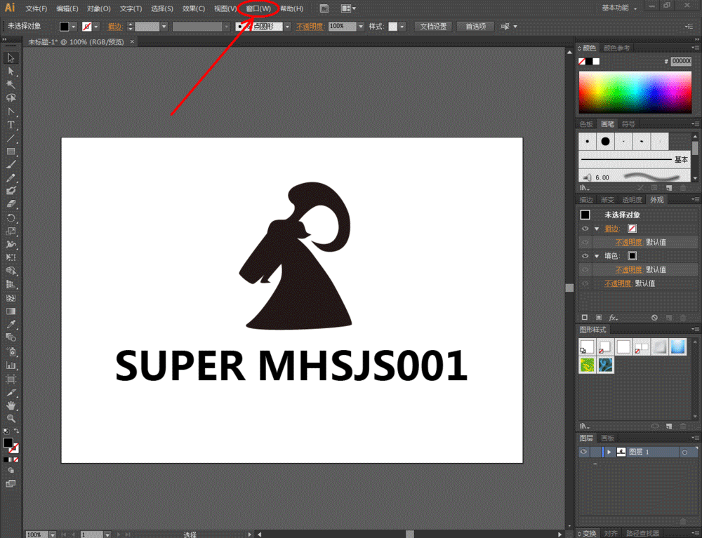 4、点击【窗口】,勾选【图形样式】将图形样式工具栏调出并移动调整好图形样式工具栏的位置。点击【图形样式库菜单】-【照亮样式】,将照亮样式工具栏调出(如图所示);