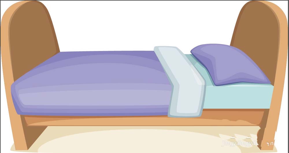 7、最后,我们给小床做出阴影的效果,同样是正片叠底的模式的灰白色填充,再完成小床上面的光线的细节的处理,结束小床家具设计。