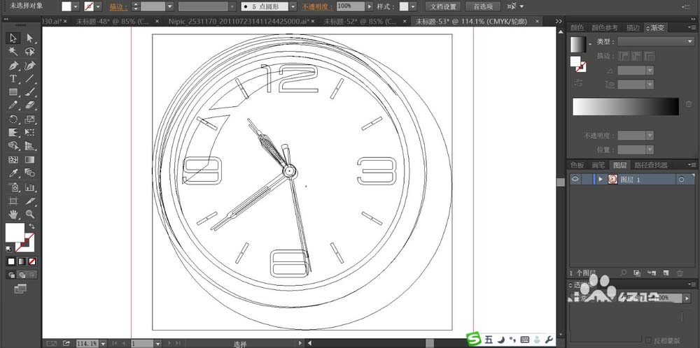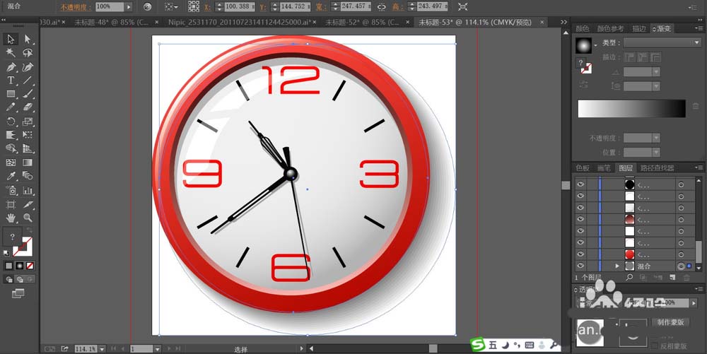 5、使用黑色填充钟面的边缘刻度线,再用红色的渐变填充钟面的数字。