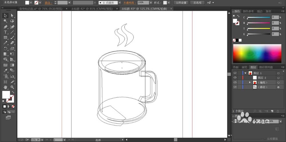 1、先用钢笔画出咖啡杯的基本结构,从内到外一一用路径绘制出来,再把香味与咖啡等元素一一用路径呈现在咖啡杯的上方与内部。