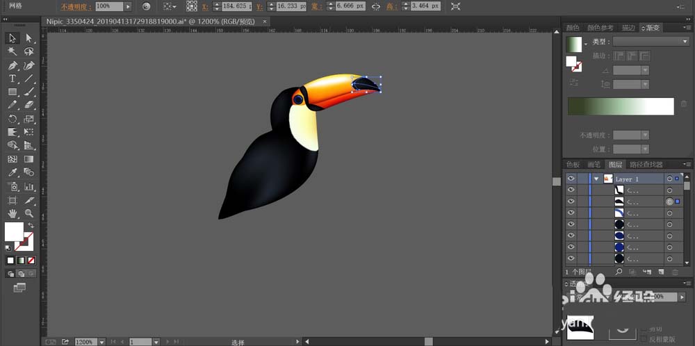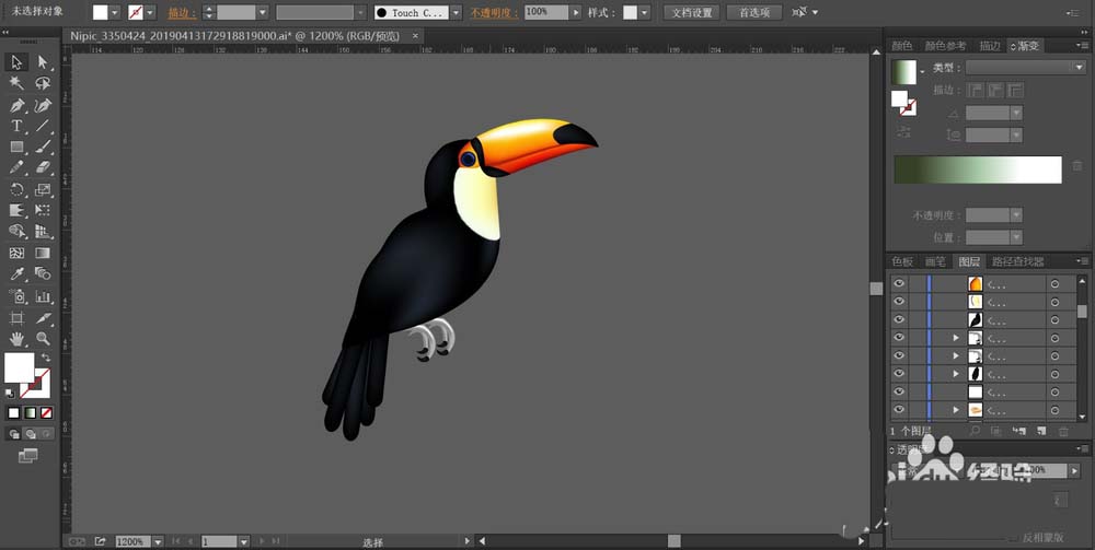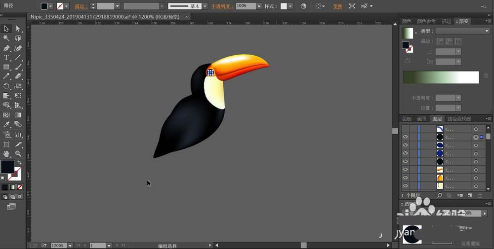 鸟在自然界中有着各种各样的形态,需要一个大嘴鸟的海报,该怎么绘制呢?今天,我们就来画一画大嘴鸟的图片,从中学习一下用网格工具呈现鸟类羽毛与嘴巴不同材质的效果技巧,还有体会一下黑色、白色、橙色在绘制鸟的过程中的应用方法。