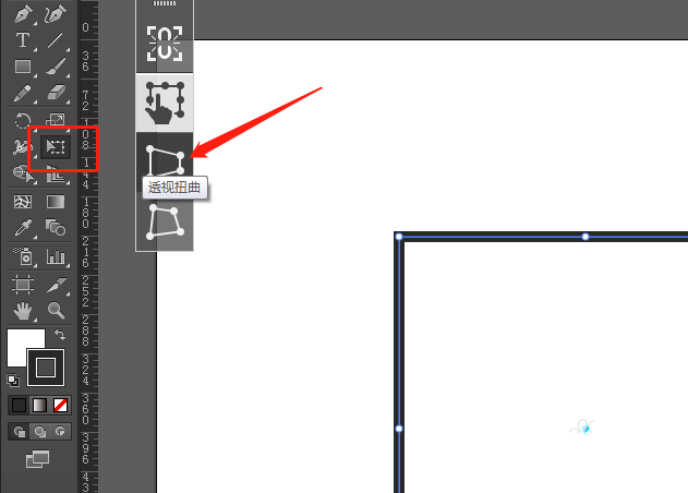 2、选中矩形,接着选中自由变换工具中的透视扭曲