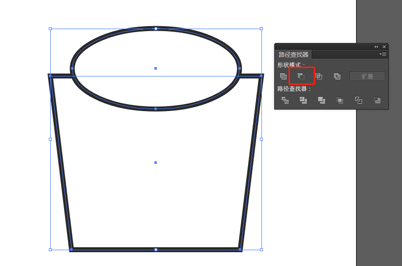 5、选中梯形和椭圆,接着点击窗口—路径查找器,在路径查找器点击减去顶层