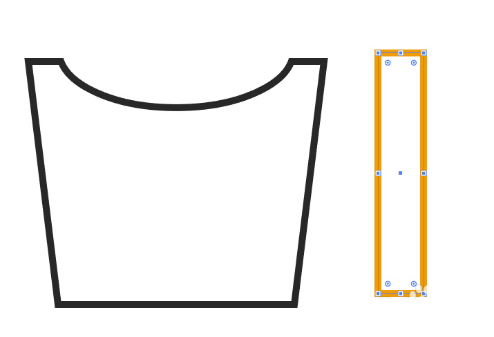 3、将矩形上面的两个点向外拖动,做成一个梯形的形状