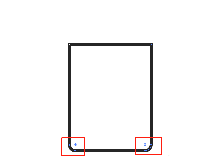 2、使用直接选择工具,选择矩形下面的两个锚点,修改圆角度为20像素