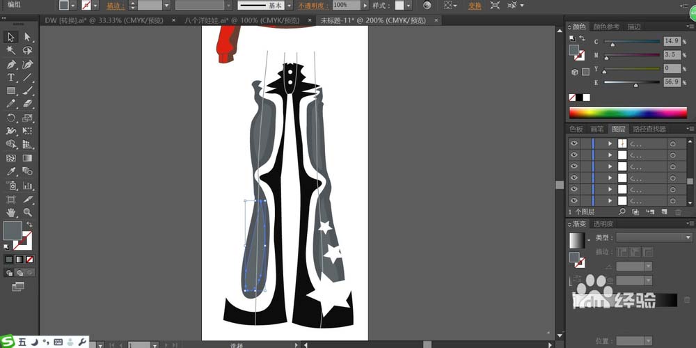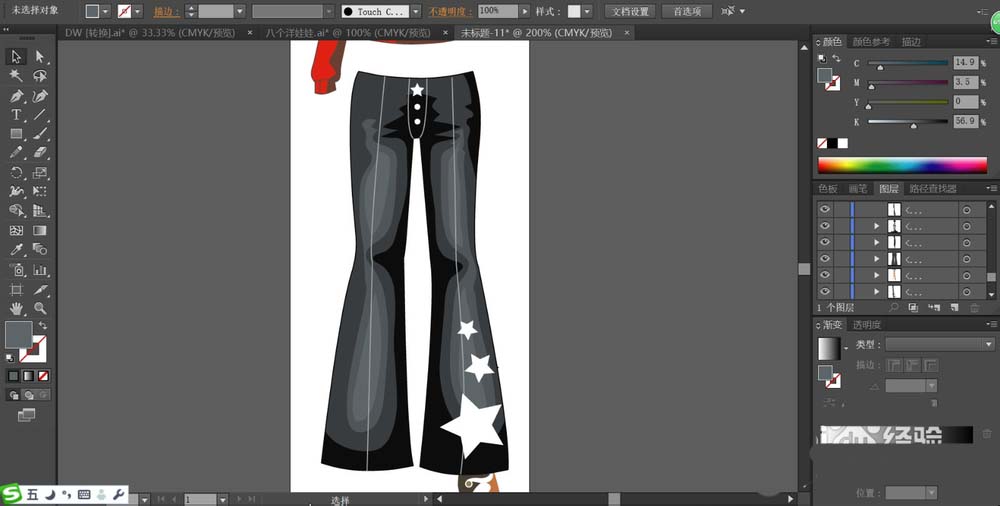 6、在长裤上面用白色填充大小不同的星星,长裤的主体用黑色填充。