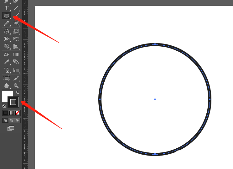 1、打开AI软件,ctrl+n新建文件,选择左边工具栏的椭圆工具,打开填充和描边,按住shift键在桌面画一个正圆
