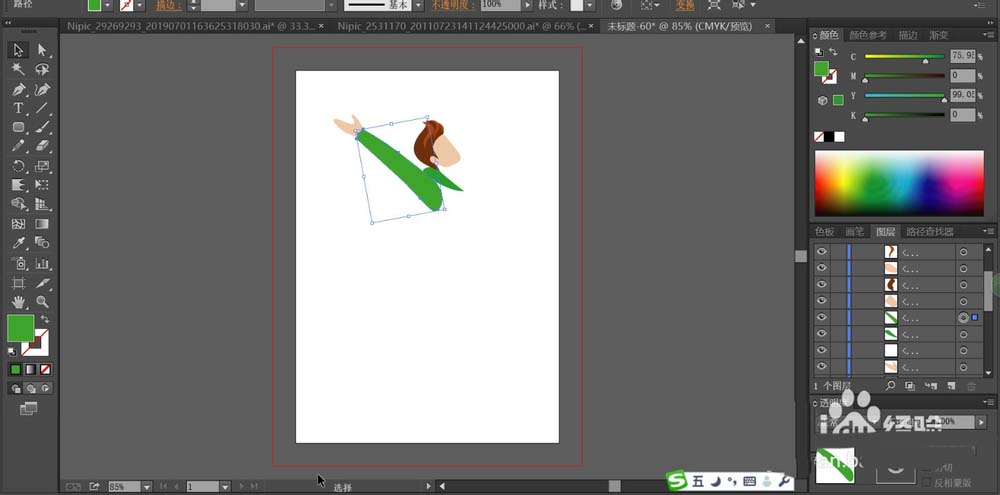 5、使用钢笔格工具给男人的上衣做出草绿色的渐变效果,让衣服更有光感的变化效果。