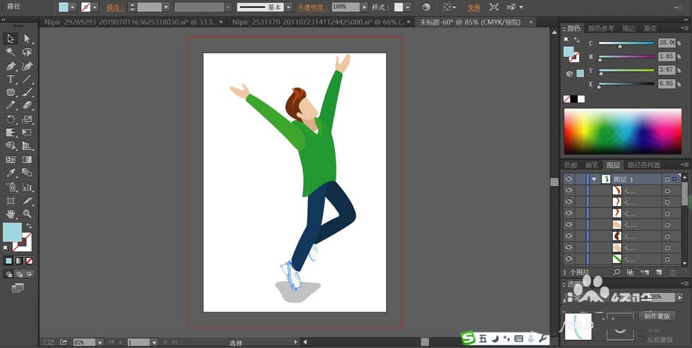 想要绘制衣服欢呼雀跃的男子插画,人在不同的心情下会做出不同的动作,今天,我们就来画一画跳跃男子,从中学习一下人物动作的构思与绘制技巧,还有体会一下绿色与蓝色在服饰上面的搭配应用,下面我们就来看看详细的教程。