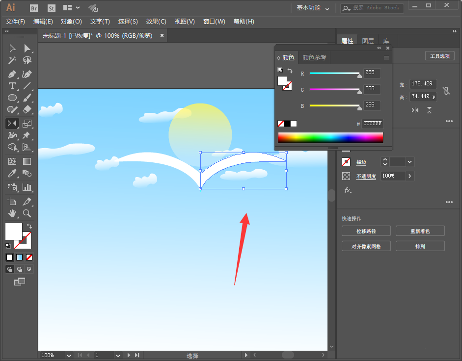 2.取消描边,选择填充为白色;
