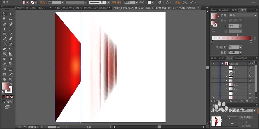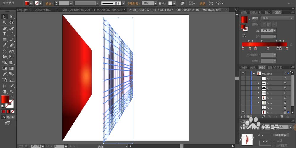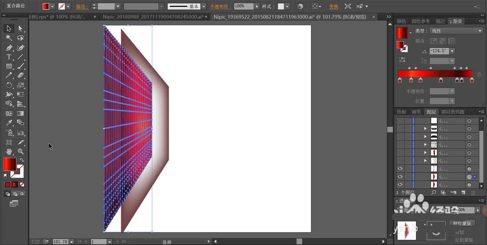 3、再用混合工具做出半透明的灰色渐变放在最下方,从而混合成了左侧墙壁的效果。