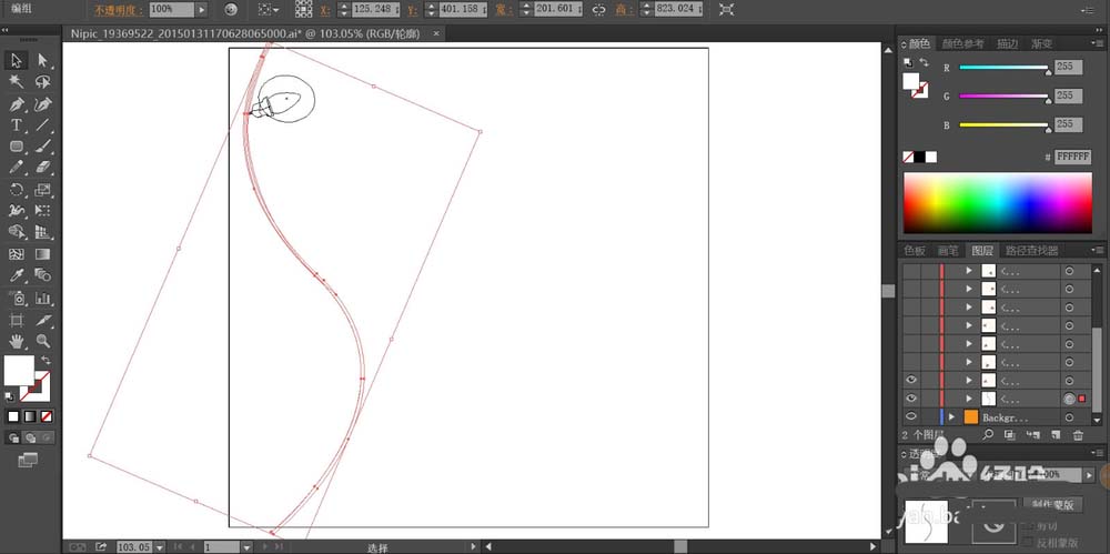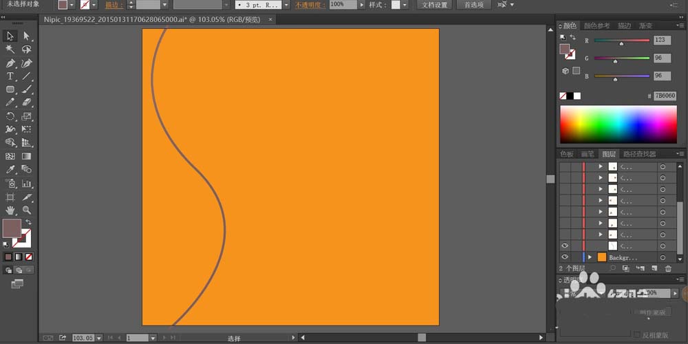 1、先用橙色填充整个图片的背景,再用钢笔画出一根弯曲的线条作为电线。电线填充紫灰色。