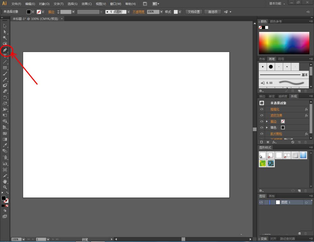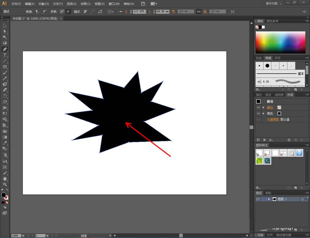 1、打开Adobe Illustrator CS6软件,点击【钢笔工具】绘制一个自定义图案;