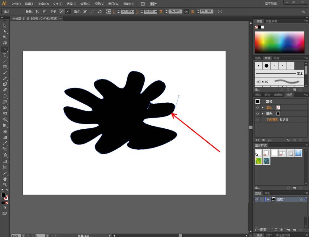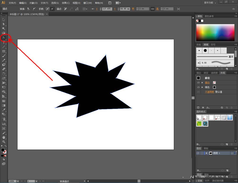2、点击【转换锚点工具】对图案上的节点进行平滑圆化处理;
