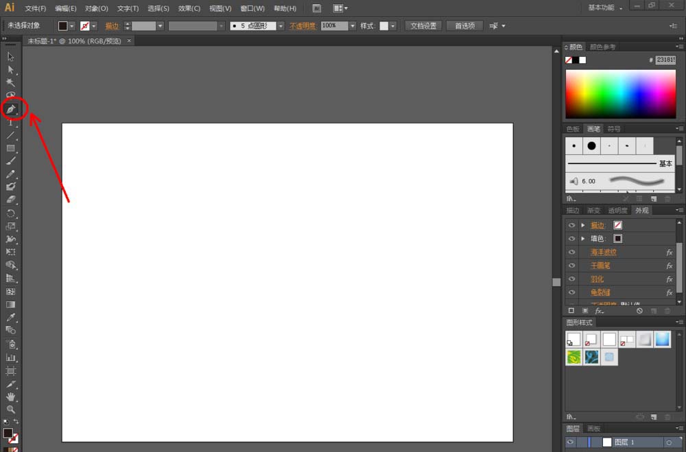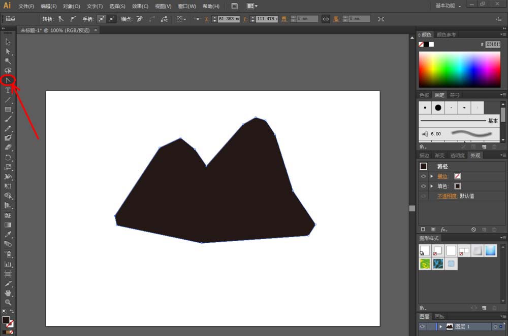 1、打开Adobe Illustrator CS6软件,点击【钢笔工具】绘制一个自定义图案;