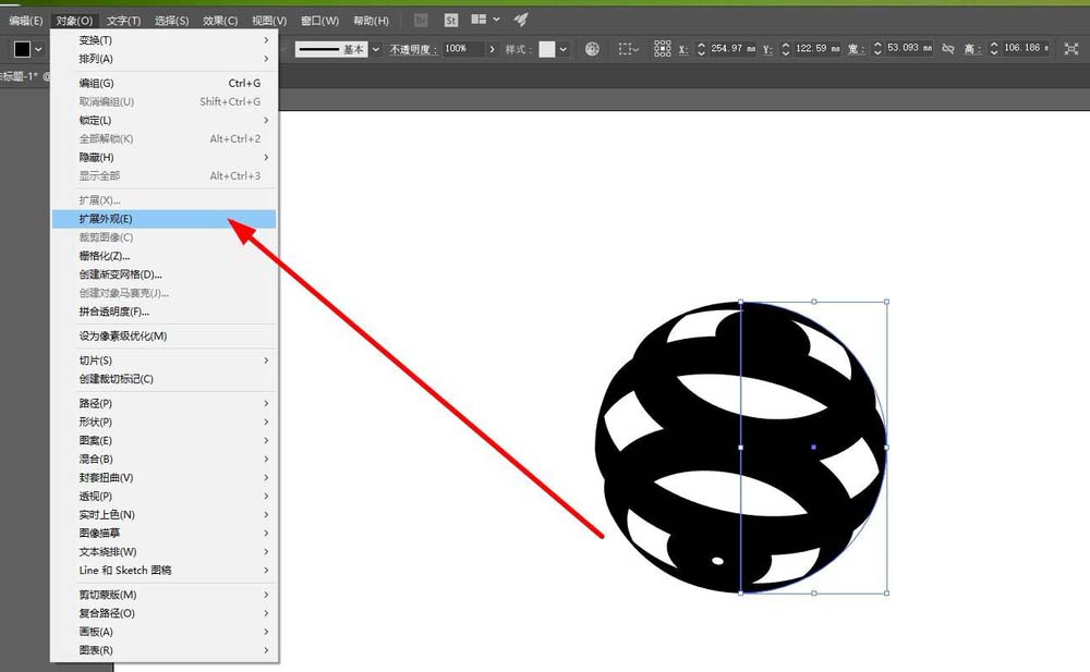 6、接着选中你的图形,对象>扩展外观>鼠标右键>取消编组两次。